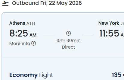 Αθήνα ⟶ Νέα Υόρκη από 135€, π.χ. 22 Μαΐου: