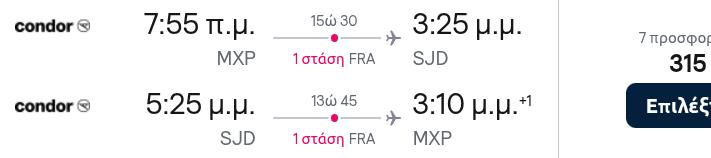 Μιλάνο ⇄ San Jose del Cabo 1-12/12, 315€ https://skyscanner.pxf.io/e164xg