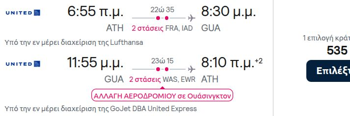 Αθήνα ⇄ Guatemala City, τον Μάρτιο – Απρίλιο 2026