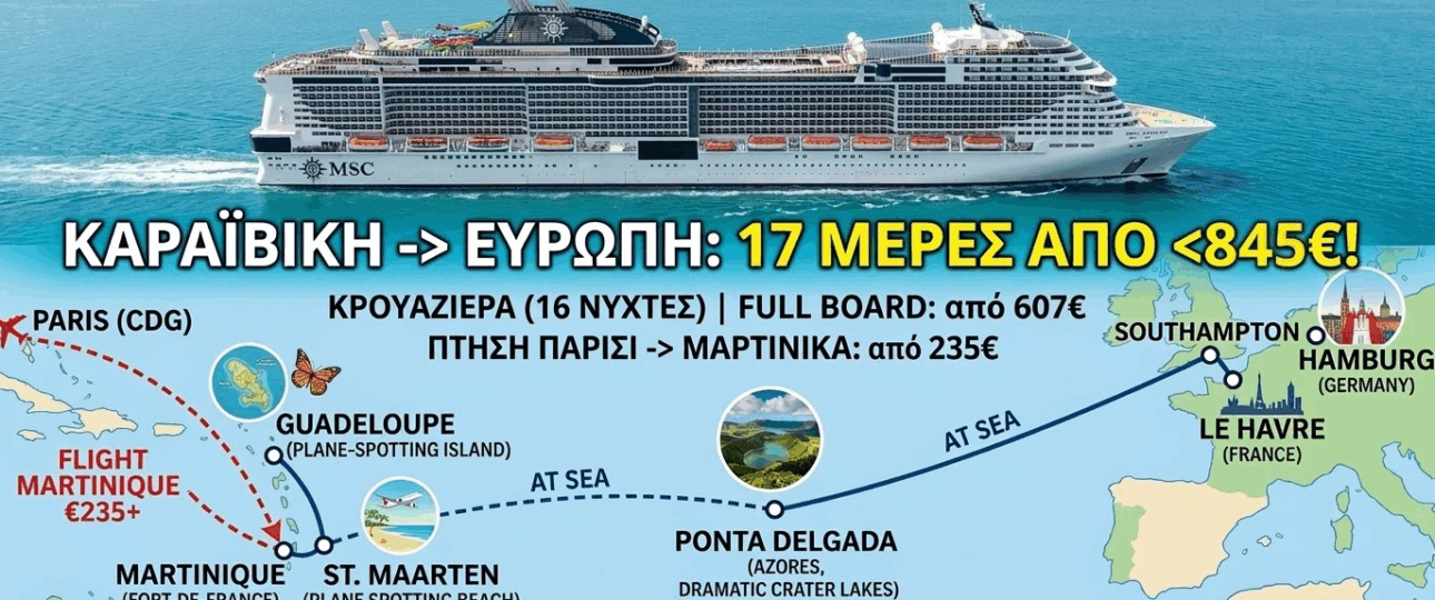 🏝️ ΚΑΡΑΪΒΙΚΗ προς ΕΥΡΩΠΗ: 17 μέρες σε πλωτό παλάτι με ~35€/μέρα!