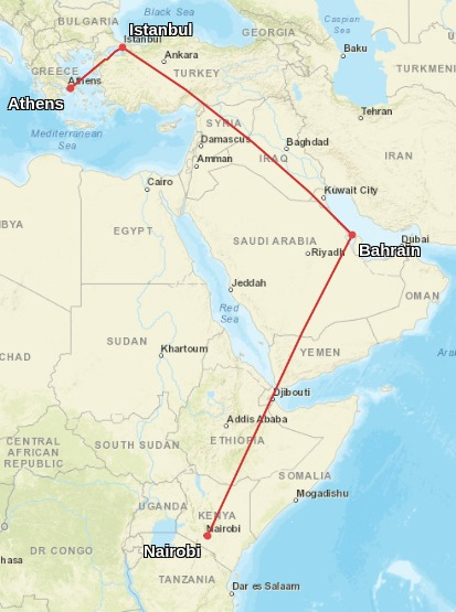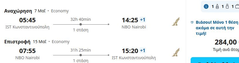1) Κωνσταντινούπολη ⇄ Ναϊρόμπι