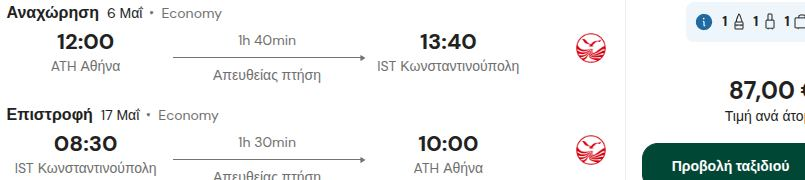 2) Αθήνα ⇄ Κωνσταντινούπολη